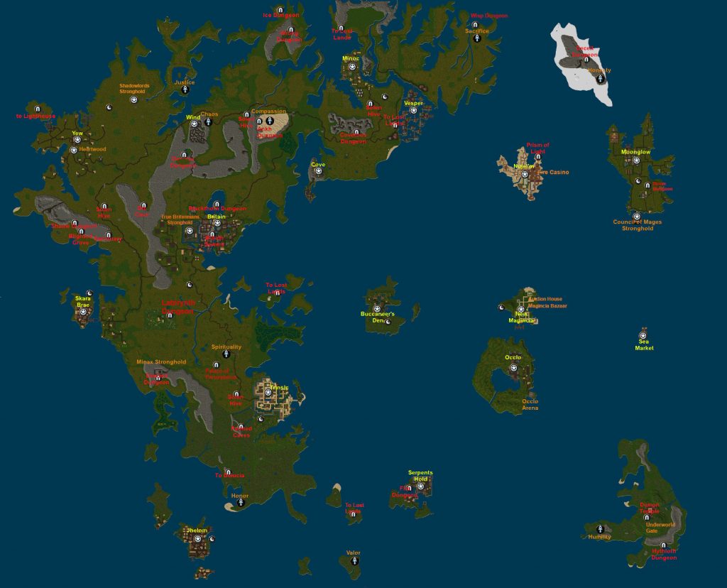 Dodatkowo zamieszczam również linki do pozostałych map kontynentów serwera MoonGate: Britannia oraz mapę lokacji startowej New Haven (są one również dostępne w zakładce Galerie).